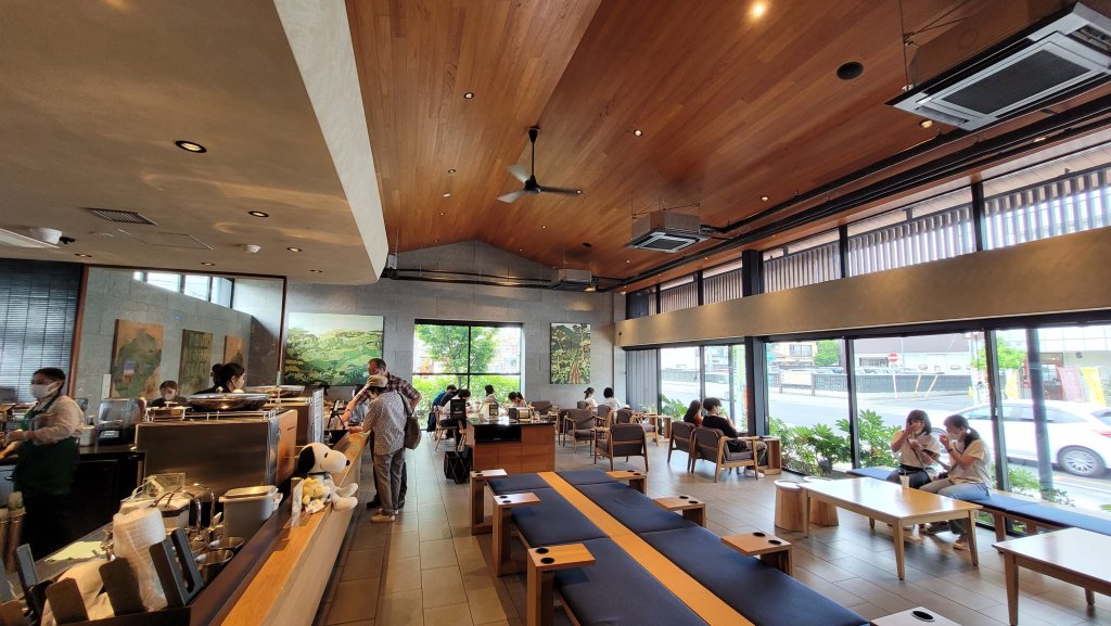 所有的店舖,都以老街形式裝潢,上面的新建築如此,星巴克也是。