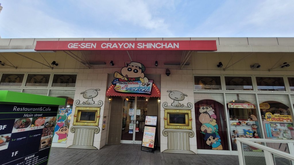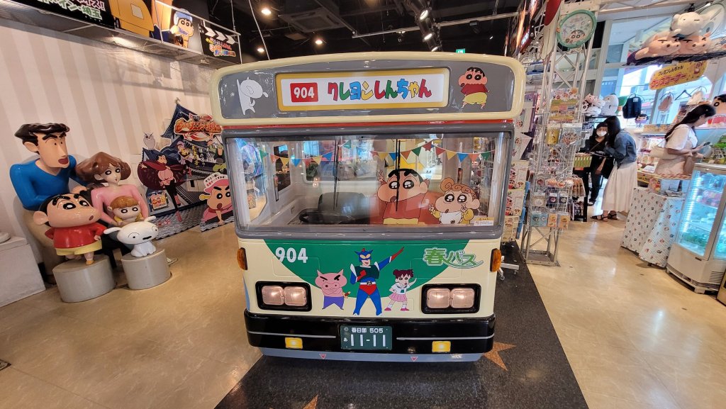 這卻恰好來到蠟筆小新的故鄉,春日部,月台發車音樂是蠟筆小新之外,街上有一些蠟筆小新的招牌,在星巴克所在的商場,還有一個迷你型的展覽。