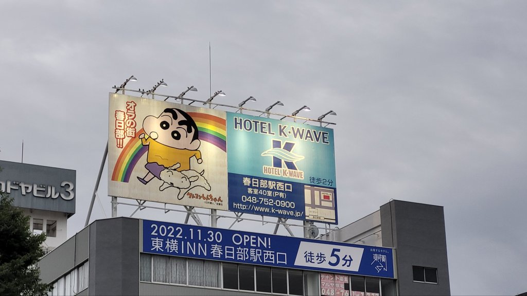 距離東京市中心約 1 小時多車程的埼玉春日部市為《蠟筆小新》的背景,是其漫畫家臼井儀人的成長之地。