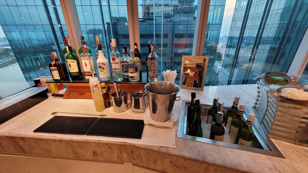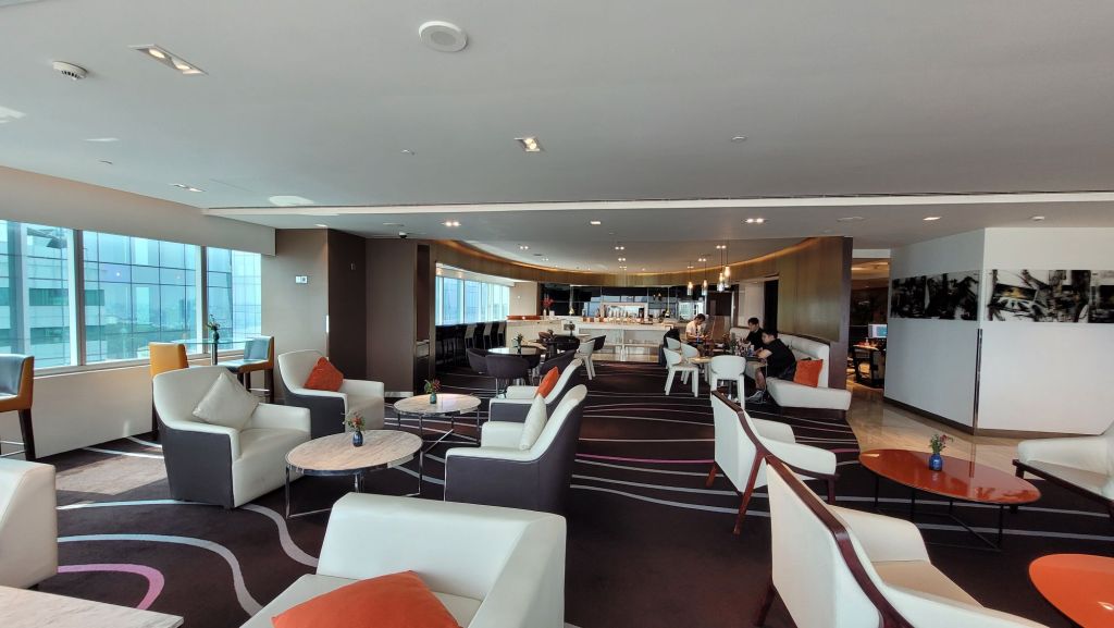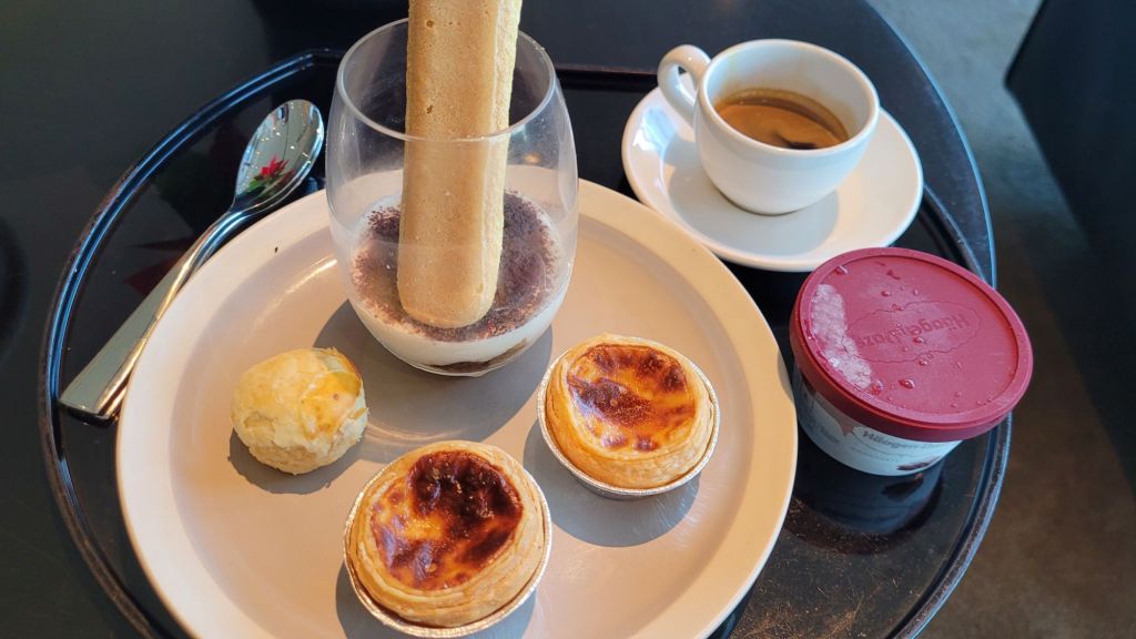 桃園國泰貴賓室在八月才開放,七月飛伯斯還要用寰宇。總之目前一天航班含三班日本第五航權已經有十幾班,桃園國泰貴賓室重返榮景。當然要來杯Cathy Delight跟擔擔麵。