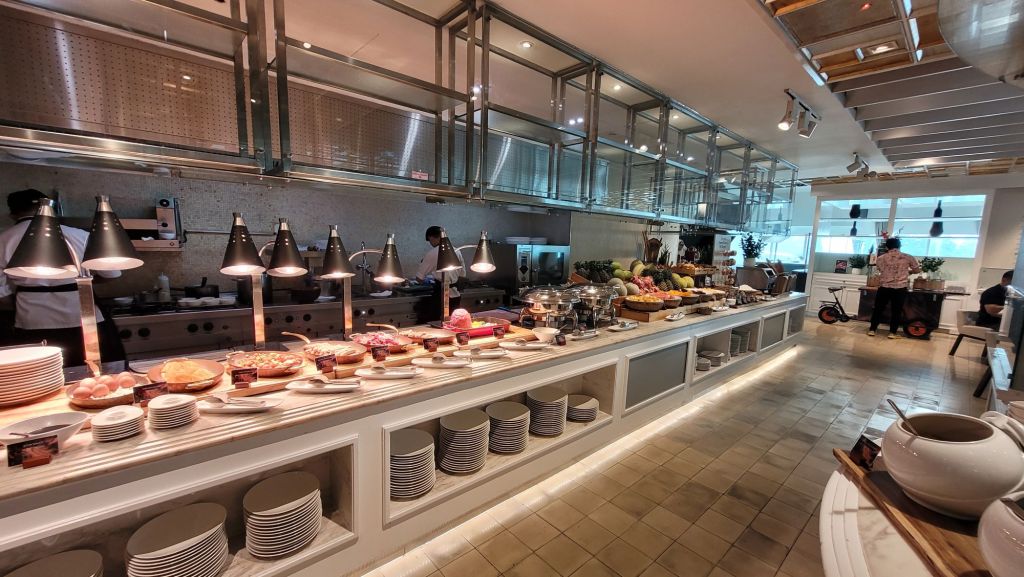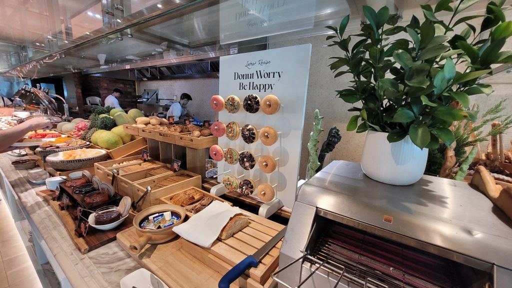 第二天早上到二樓吃早餐。萬豪會員本來就可以進貴賓室吃早餐。迎賓禮可以選1000分或吃二樓早餐,選擇當然多很多。
