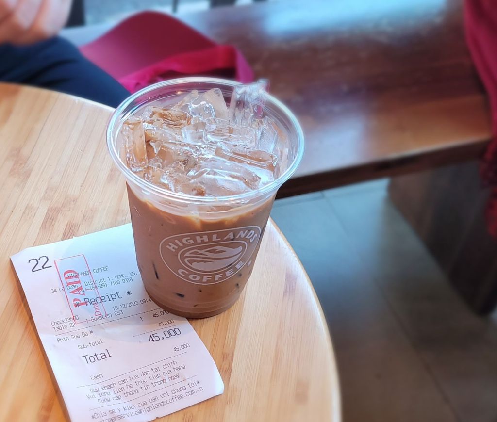 對著照片指手畫腳點了cà phê sữa đá,49k,滿滿的冰塊。