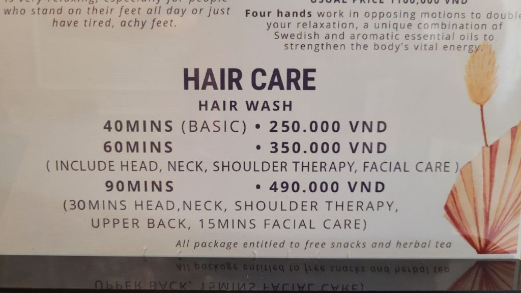 之後經過獨立宮,直接去剛開門的越式洗頭報到,選了350k的方案,後來小費多給50k。越式洗頭初體驗,特別選有專用水龍頭的。