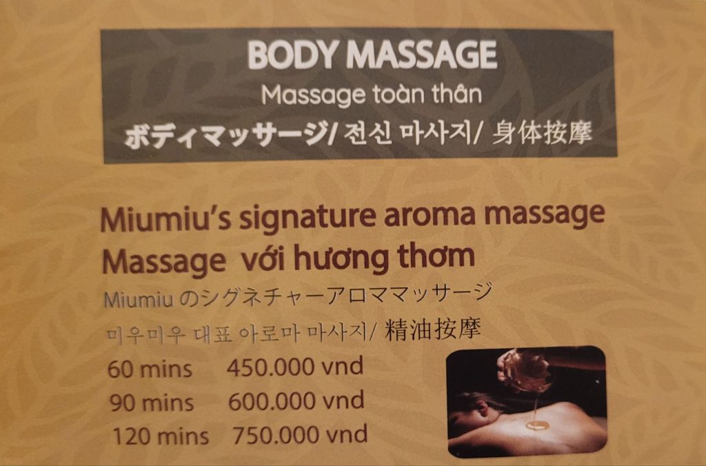 第一天晚上先到Miumiu2按摩 ,很多日韓客人,第一天沒預約只能做30分鐘。直接把第二天約起來。
