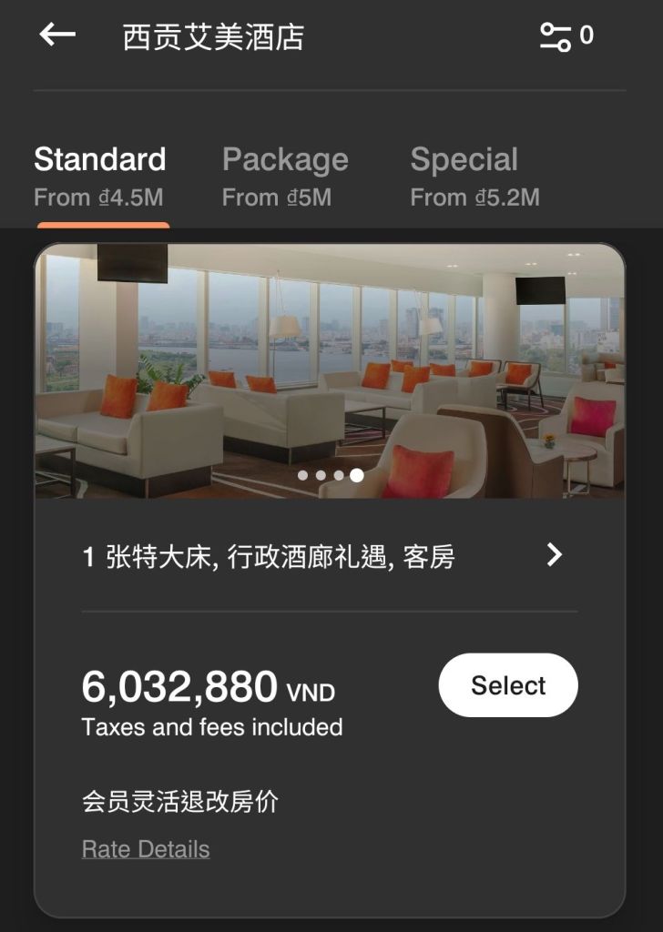 一路塞車到我們預約的 Le Meridien 西貢艾美。身為鈦金會員,這次稍微談心了一下,事前透過App暗示我們來過結婚紀念,他們說會安排一下,其實我只是想升套房。
