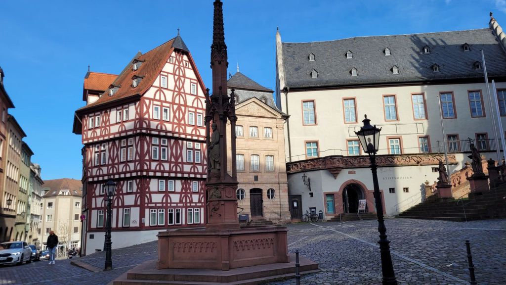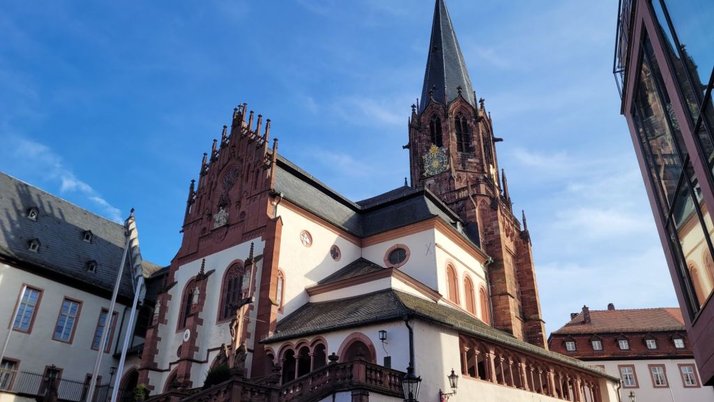 回程去阿沙芬堡 Aschaffenburg,從我停車的歌劇院地下停車場出來,就是有名的教堂。成立於十世紀,有上千年歷史。