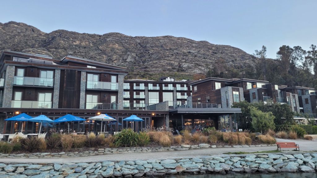 我們住宿選在 Hilton Double Tree,一天2000元多,離皇后鎮6公里,非常方便。很意外有小客廳與小廚房,省了不少外食費。