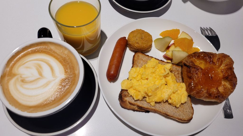 早餐也很滿意,滑蛋剛出爐不會太熟,薯餅跟香腸也不錯。英國燉豆嘛,我們謝謝再聯絡。