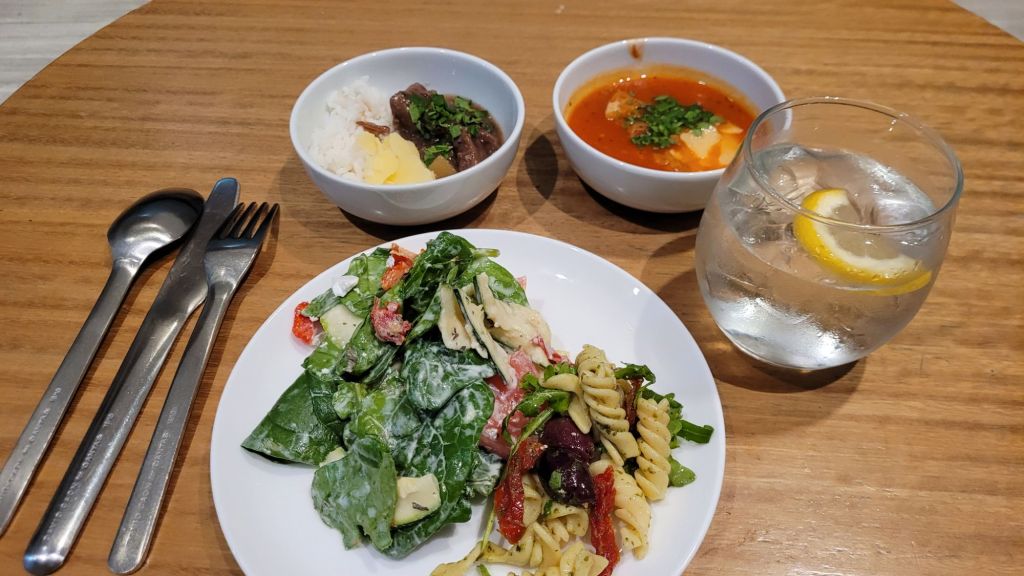 深夜航班(國泰)食物很簡單,有沙拉水果,熱食的牛肉飯還不錯。