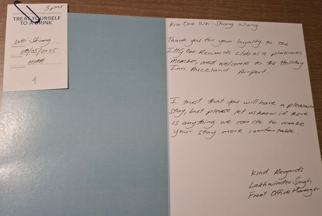 這次旅館是 Holiday Inn Auckland Airport,66000點搞定3+1天共四天,三人兩床,市價大概3600台幣(不可退)到4500台幣左右。這也是2013年紐西蘭北島遊國泰回程延遲,國泰提供的住宿,算是舊地重遊。