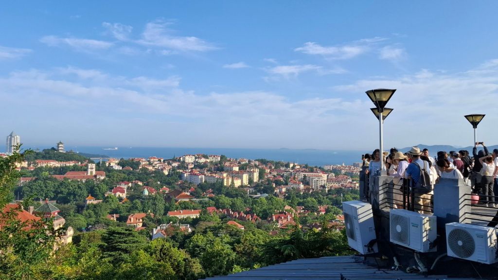 從青島的制高點信號山公園開始吧!爬上山頂,360度無死角俯瞰青島老城區,紅瓦屋頂在綠樹掩映下,配上遠方的蔚藍大海。