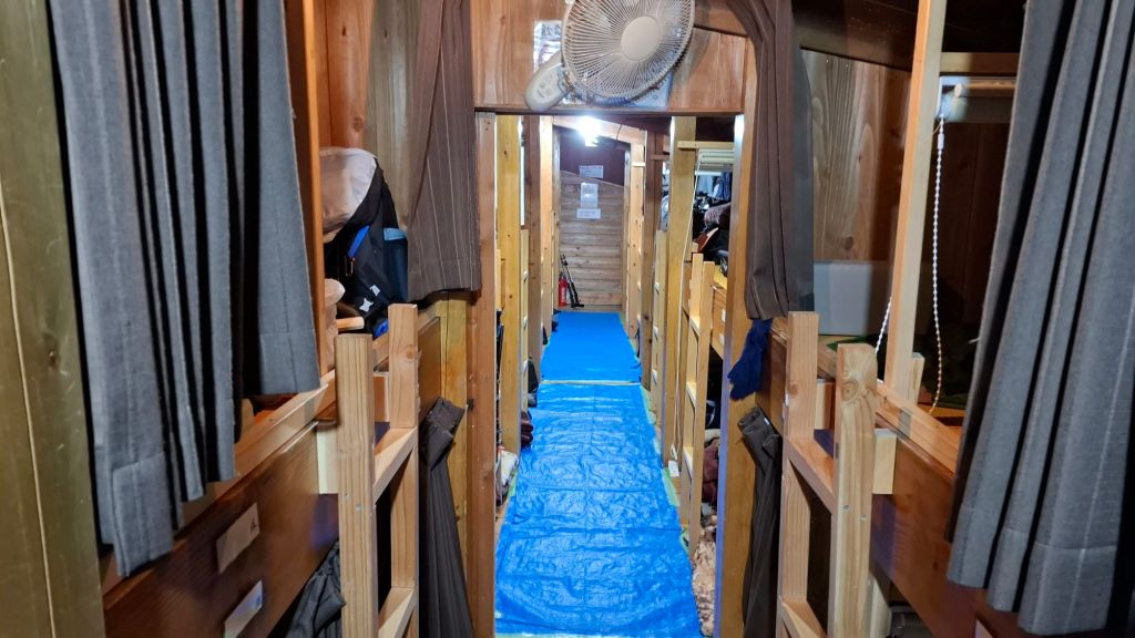 在用完簡單的餐食後,早點就寢準備展開清晨的富士山登頂。因為強風,導遊告知本團(與隔壁雄獅團)會在00:30告知是否可以登頂(如可以則1:00出發)。00:30則告知,3:00會再通知,如可以登頂則3:30出發。