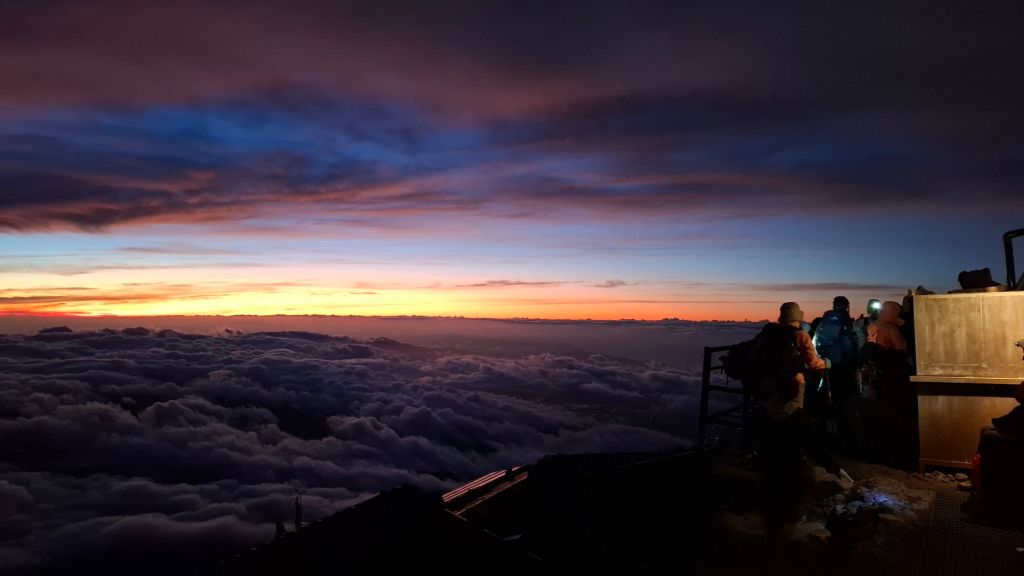 還好3:00被告知可以登頂,不過4:30日出,所以不能在富士山頂上看御來光。這反而更是我心目中的最佳行程,睡得比較久,登頂摸黑時間也少。