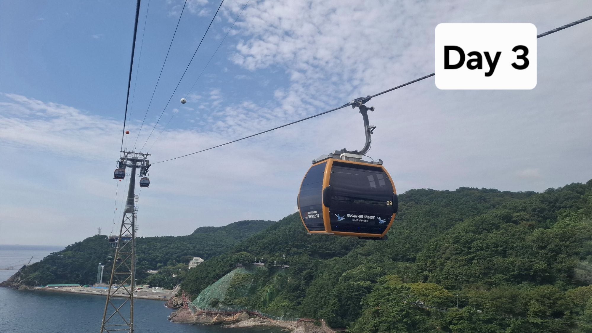 纜車本身就是釜山Pass指定免費體驗的重點之一,沿途可從高空俯瞰壯麗海景與松島全貌。纜車抵達後可步行探訪松島龍宮雲橋,橋上遠眺海岸,極具打卡特色,也納入釜山Pass免票清單,趕時間沒有去。因為沒有時間。