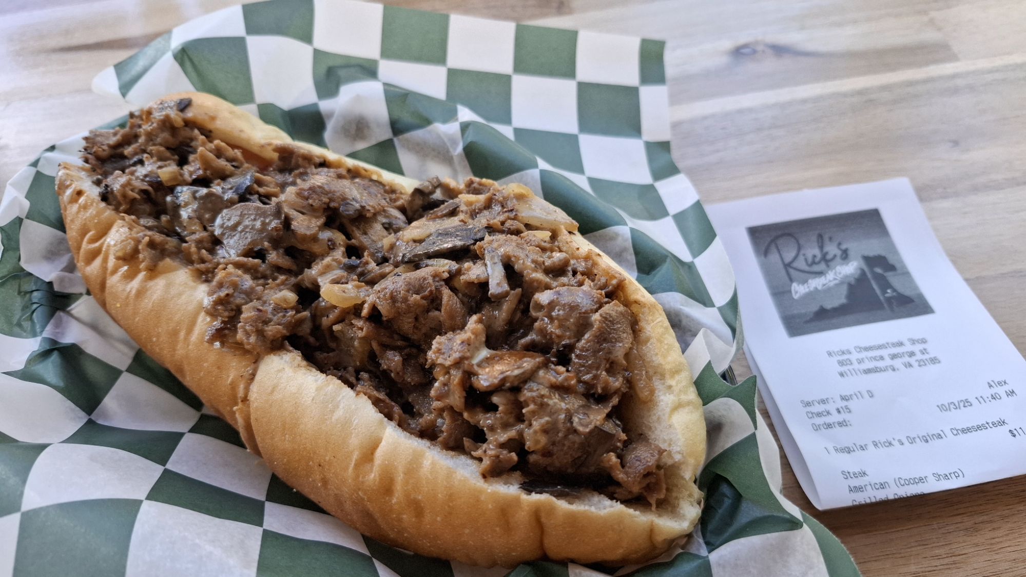中午到附近的 Rick’s Cheese Steak Shop ,費城起司牛排三明治為主打菜品。網路上獲得高評價(4.7分),特別以其美味的奶酪牛排聞名。