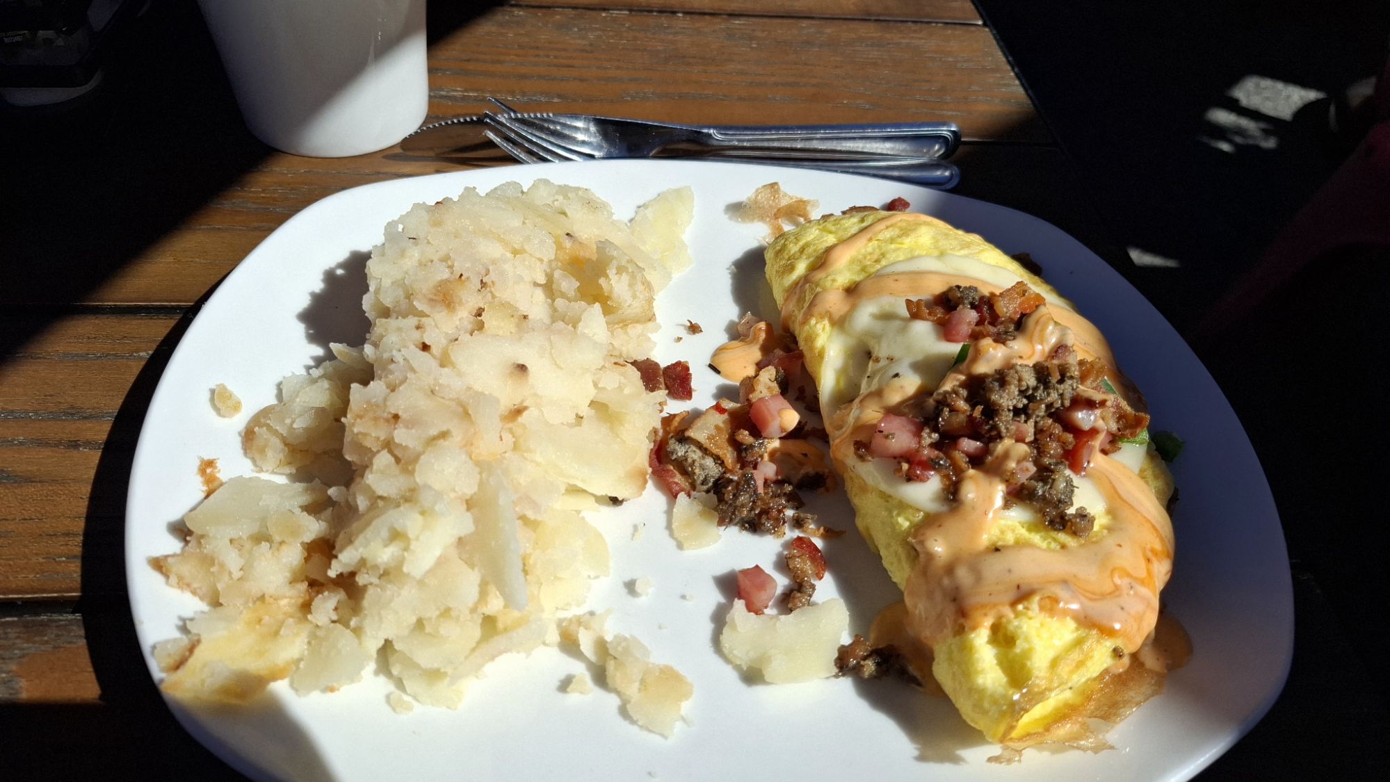 我點了Angry Pig Omelet,總之就是各種豬肉,包括培根,經典美式口味。