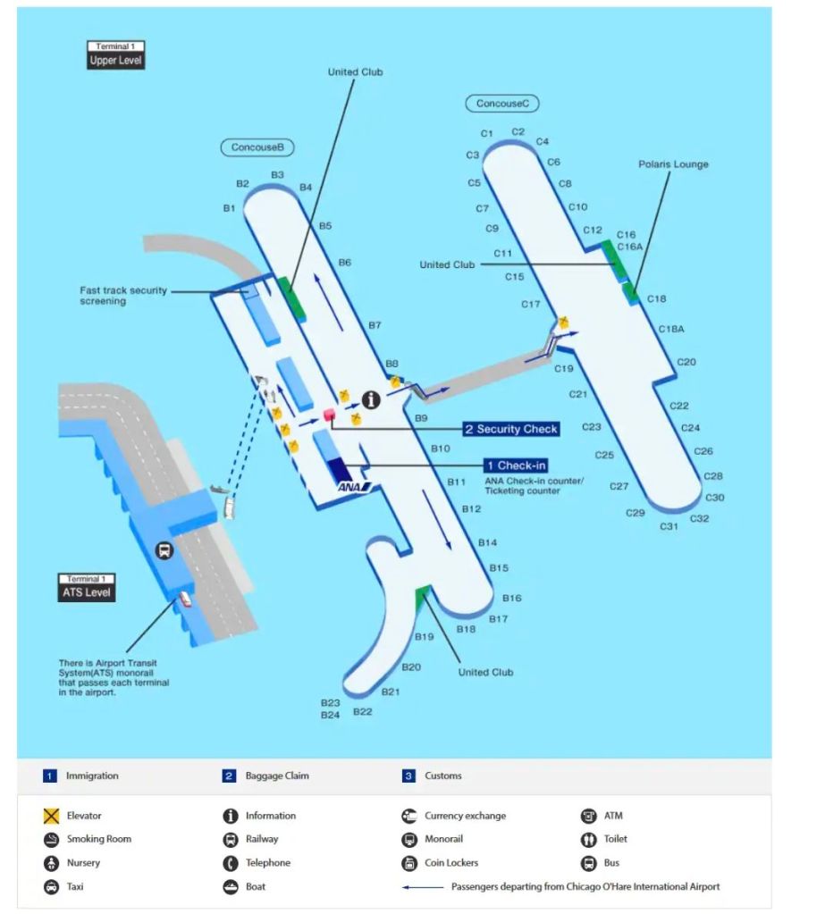 去日本登機口在B14旁邊就是 United Club,不過北極星在C航廈C18,要走一下20分鐘。