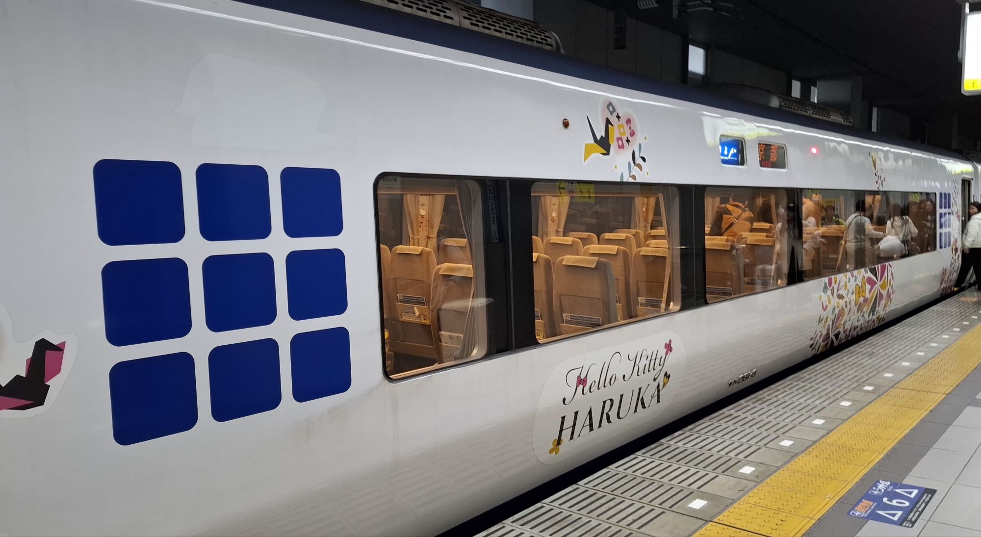 關西空港往京都搭乘 Hello Kity 的 Haruka 列車,雖然是老IP,但是還是蠻有趣的。