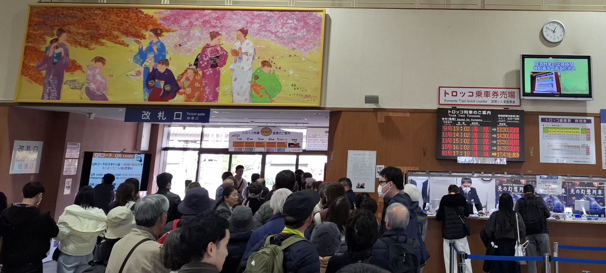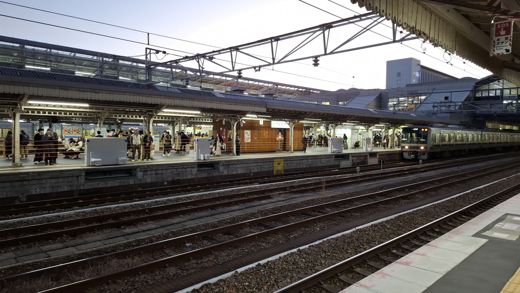 10點準時搭乘接駁車到堅田,沿湖西線23分鐘的京都。接下來搭JR嵯峨野線,到達JR嵐山嵯峨站,旁邊就是嵯峨野觀光鐵道嵐山站。