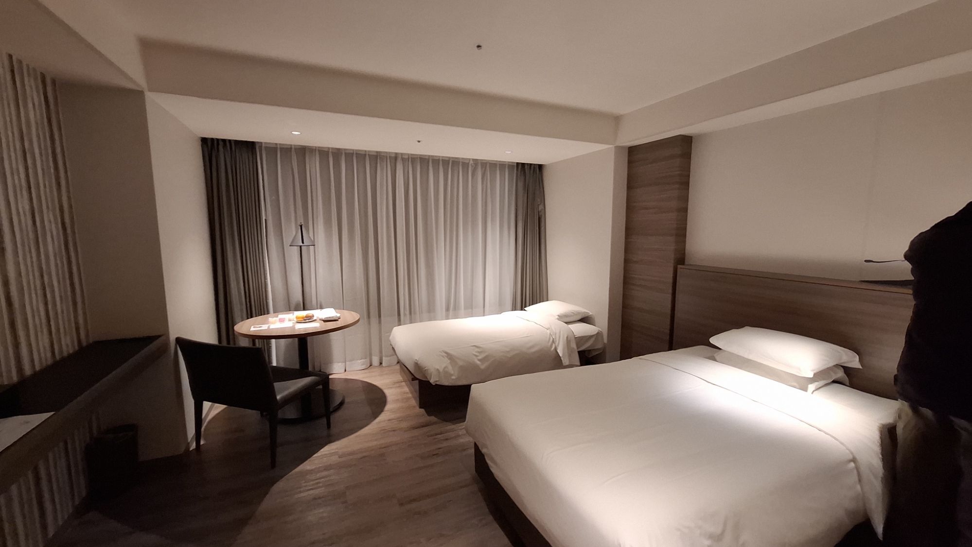 跟年紀大的爸爸媽媽出門,舒服還是第一要務,花了10.5萬換了三晚,除了Twin Bed外,還有一張已經鋪好的單人小床。三個人紅葉季這個點數住萬豪,還算可以。