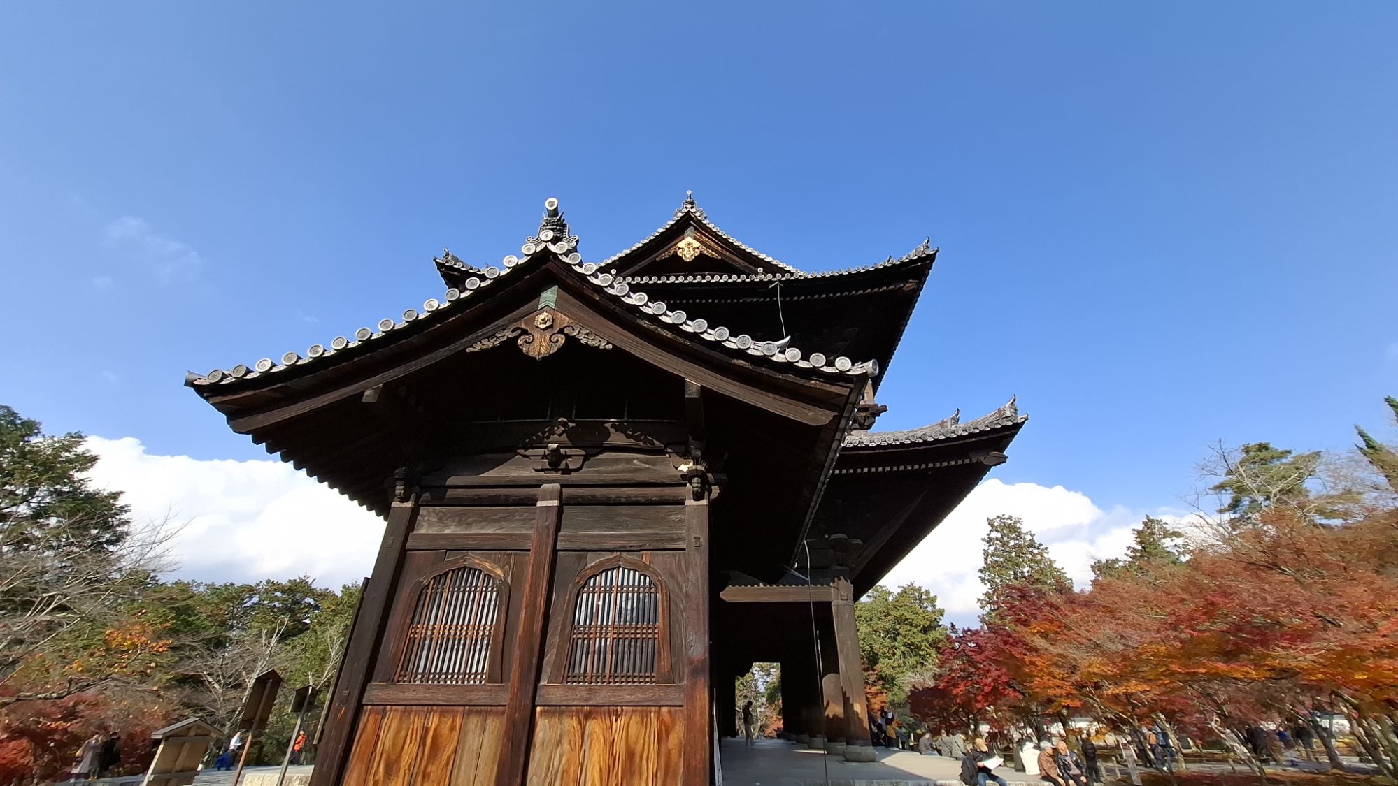 三門:高22米的山門,從樓上眺望紅葉海洋,景色壯麗。