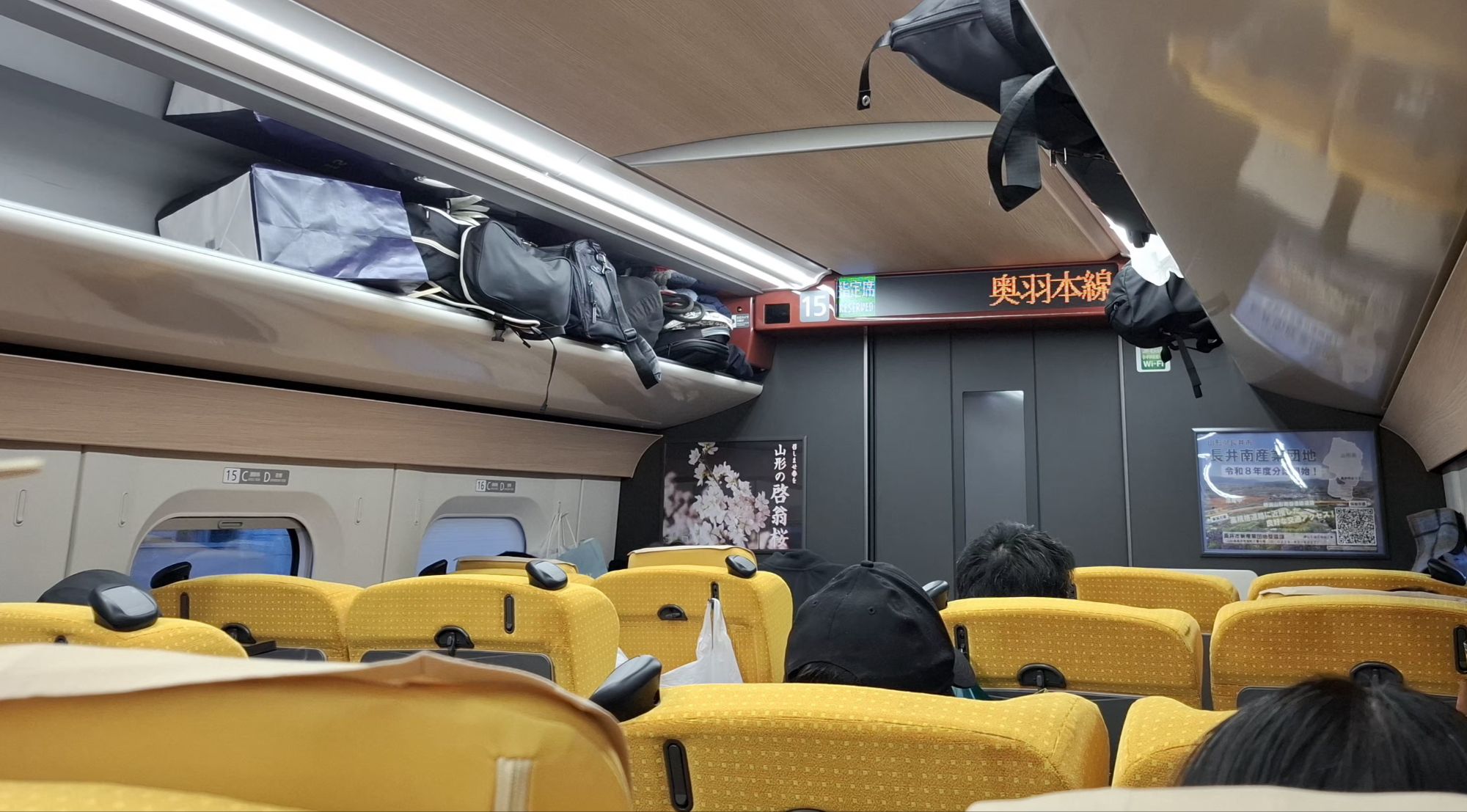 上野到福島是自由座,正好是年末年始返鄉潮,東北新幹線滿滿滿。福島到山形則是有位置。