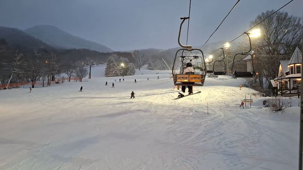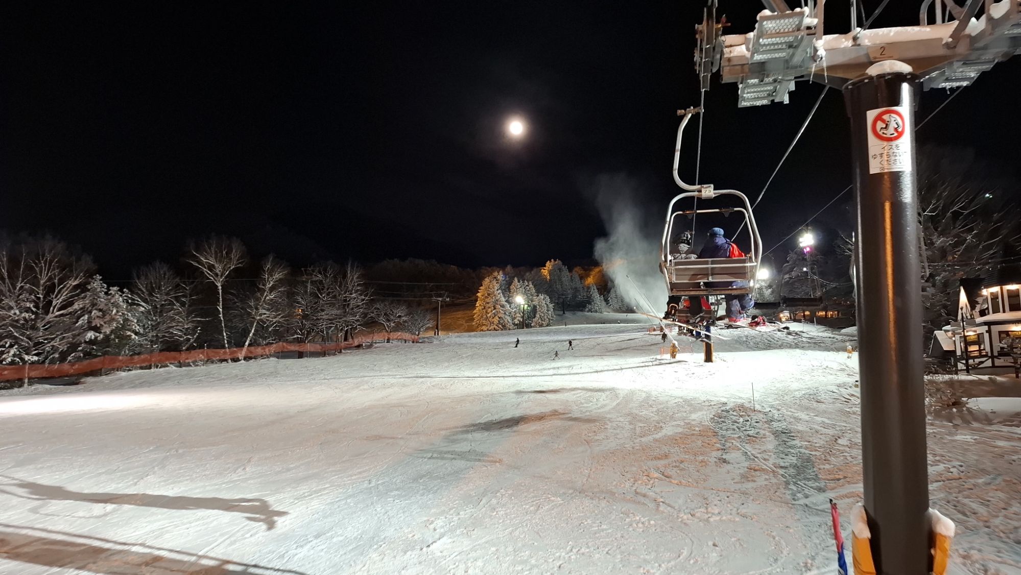 夜間滑雪:使用滑雪的票(可以用全日票或買夜滑劵),在滑道下方活動,在上之台區,不是樹冰區。其實滑到4:30就日落了。這幾天只有5號纜車有開,上去五六分鐘,下來一兩分鐘,滑不到一小時就覺得有點無聊了。
