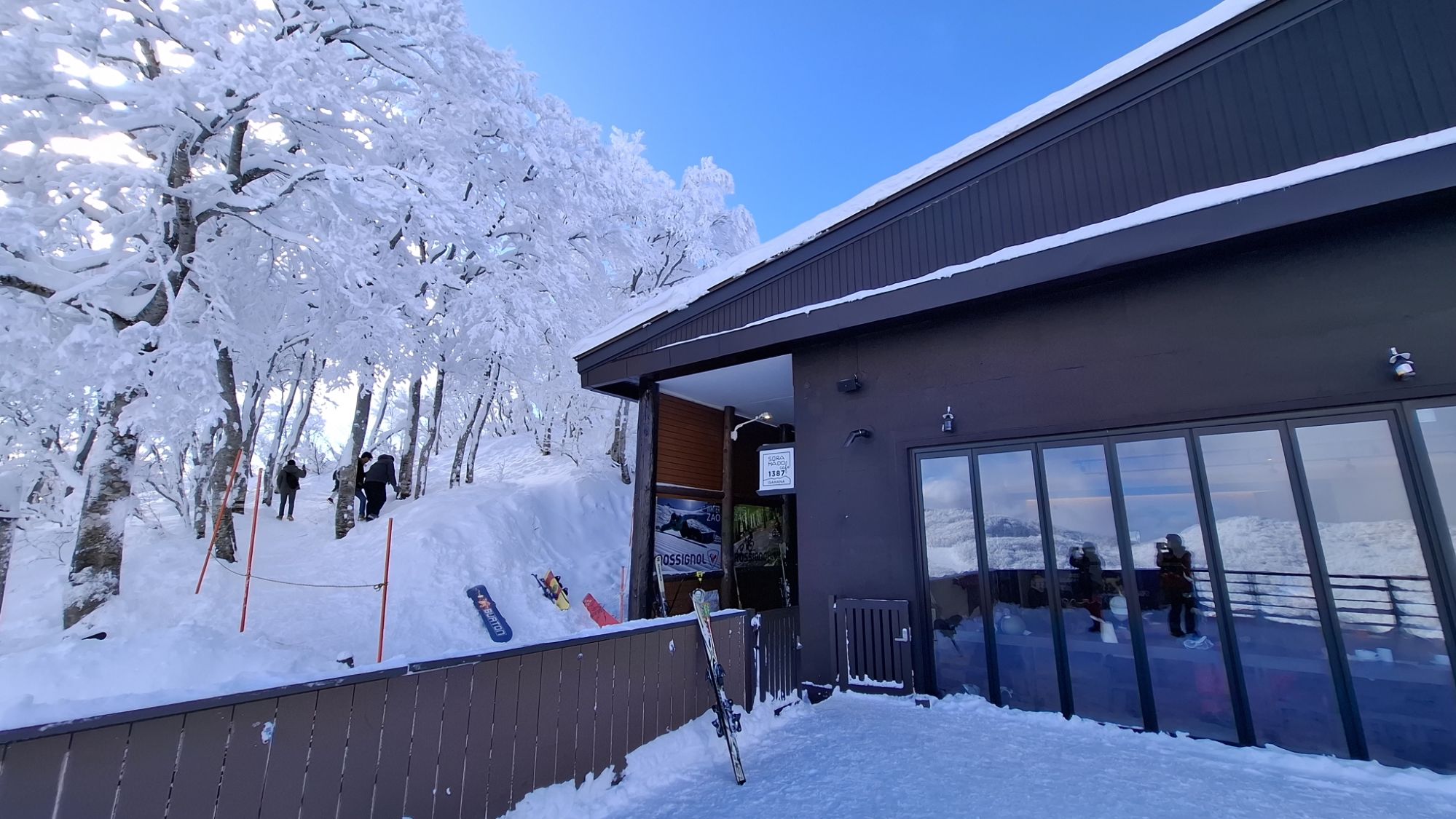 咖啡:SORAMADO cafe 1387 ISAHANA 在蔵王中央ロープウェイ鳥兜駅裡,跟 Rossignol 有合作。景觀超好,有大窗跟露台,可以邊看雪場邊喝咖啡。