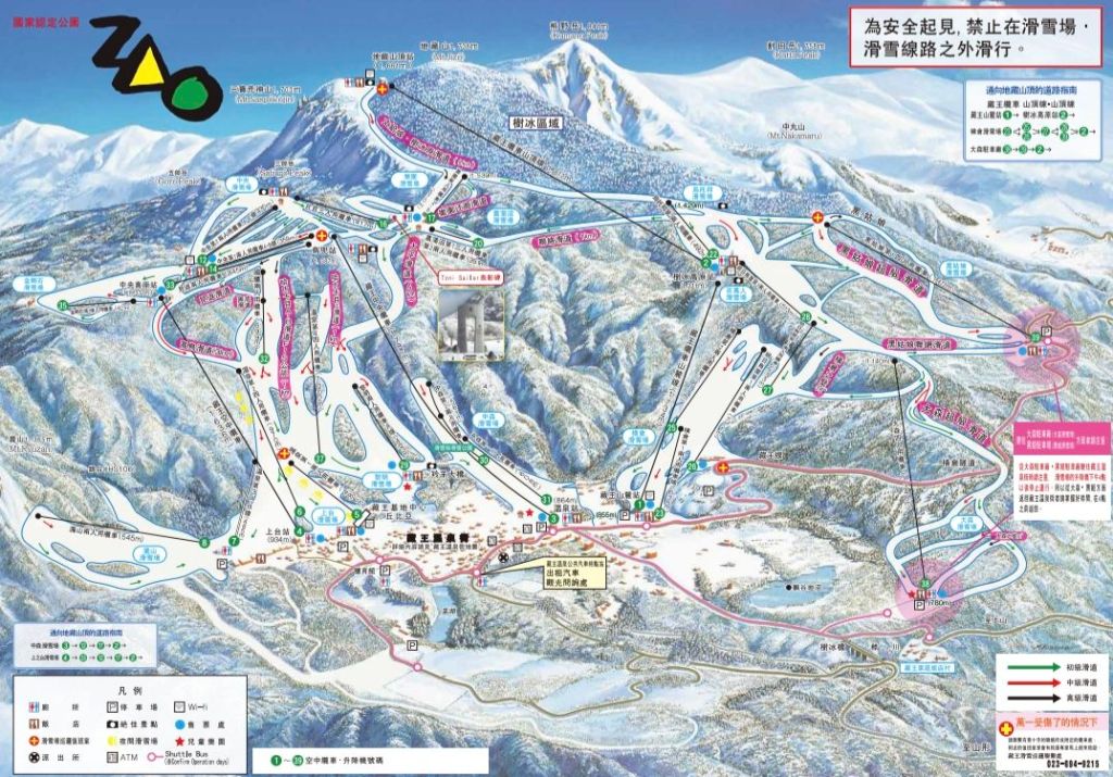 特色:這是藏王最早開發的區域,雪道非常寬敞且坡度平緩,非常適合練功。
